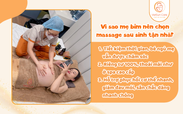 Sau khi sinh, việc di chuyển đến spa hoặc trung tâm chăm sóc thường khá khó khăn, đặc biệt với những mẹ sinh mổ. Massage sau sinh tại nhà giúp mẹ được thư giãn ngay trong không gian quen thuộc, không cần ra ngoài, vừa tiết kiệm thời gian vừa đảm bảo sức khỏe.